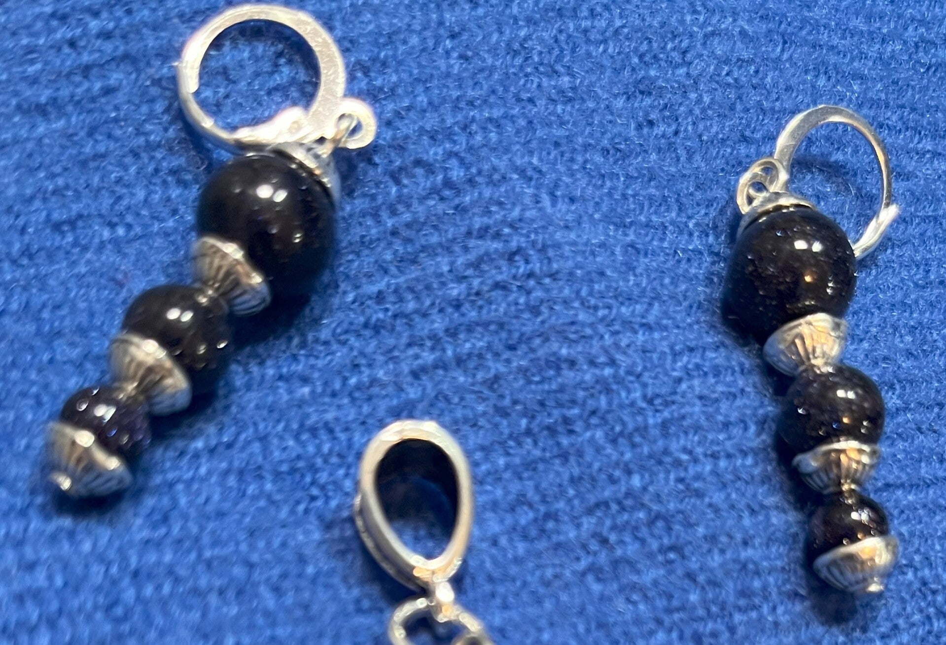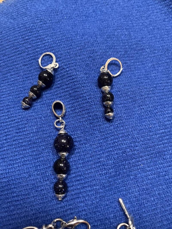 Dark Navy Blue Sand Stones Pendant and Earrings Set: comes with a 2" pendant (no chain), and 2" earrings. Made of dark blue sand stones, and silver caps and findings. Any of your own chains can fit in bail bead if smaller than 6mm in diameter. If you wish to get a chain from my site, please send me a message.
