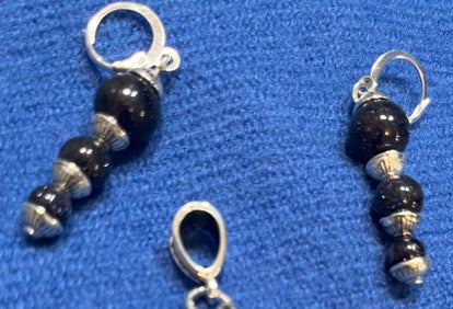 20" necklace, 7.5" bracelet (plus extension), 2 pairs of earrings of 2"